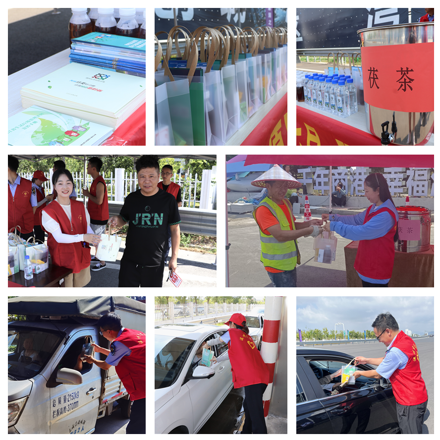 活动中,志愿者们在收费广场设立便民服务台,向过往司乘人员免费提供茯茶、风油精、硫磺皂、藿香正气水等夏季清凉便民用品,分发《收费员想对您说》《高速行车注意事项》《浙江省生活垃圾管理条例》等宣传册,并接受司乘人员对ETC车辆、路况咨询、绿通车免费范围、节假日小型车辆免费通行政策以及交通法规等方面业务的咨询;同时提醒司乘朋友高温酷暑时节注意适时休息,保障行车安全,志愿者们的温馨服务、贴心问候得到了过往司乘朋友的一致好评。