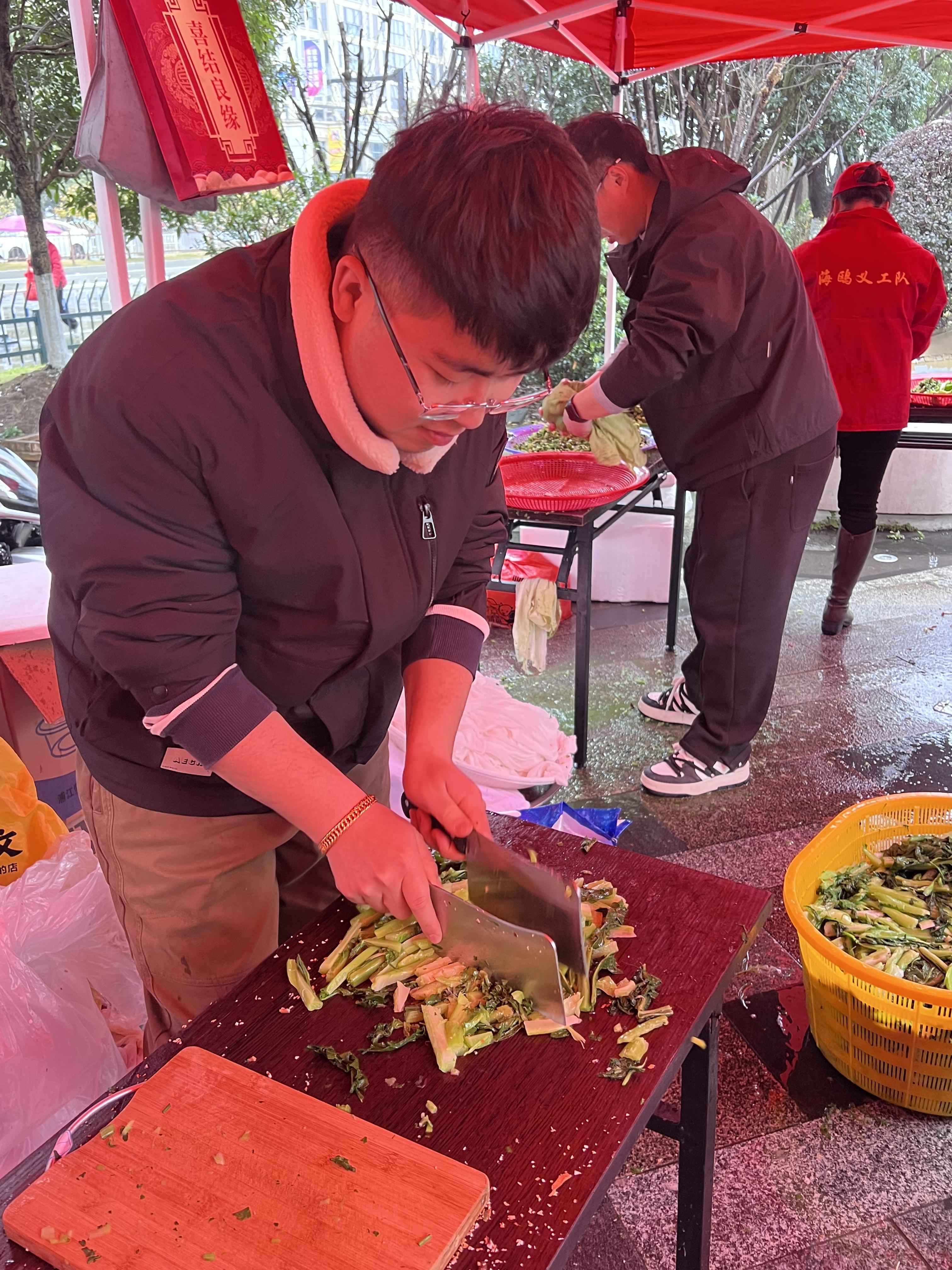活动现场,志愿者们身着统一的服装,忙碌而有序地准备着芥菜饭。他们精心挑选新鲜的芥菜和优质的食材,用心烹饪出一份份美味可口的芥菜饭。同时,他们还设置了志愿服务点,向过往的市民介绍二月二的传统文化和芥菜饭的寓意,让更多的人了解并参与到这一节日的庆祝中来。