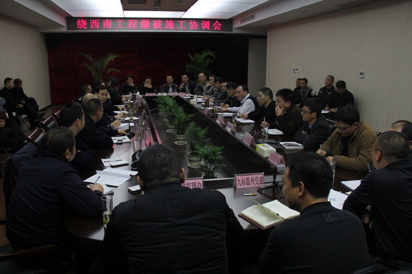 根据12月9日市委常委、常务副市长陈作荣专题督查绕西南工程的会议精神,市公安局立即行动,于12月11日上午,在绕西南公司组织召开工程爆破施工专题协调会。市治安支队队长叶辉副支队长葛震海、第四大队队长朱晰,市交投集团副总经理、绕西南公司总经理管连众,各县(市、区)公安局、指挥部,爆破监理、涉及爆破的施工单位有关人员参加。
