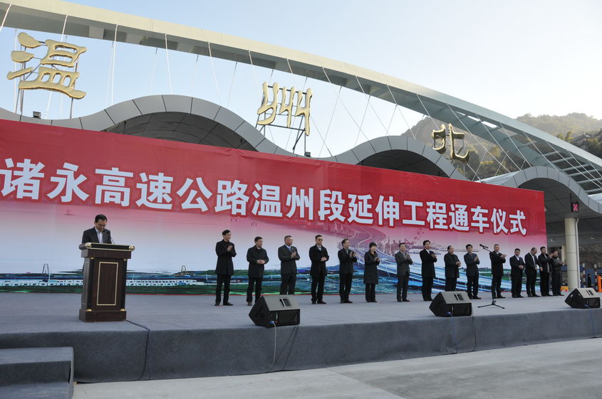 通车典礼上,集团董事长黄溢涌介绍了诸永高速温州段延伸工程概况,他说,作为交投集团负责投资与建设管理的第一个高速公路项目,我们本着对历史负责、对人民负责的态度,精心组织、科学实施、严格监管,扎实开展技术创新、管理创新,积极协调参建各方力克政策处理、土地审批、资金筹措等难题,高标准、高效率、高质量地完成了项目建设。并表示将以此项目通车为起点,乘势而上,克难攻坚,奋发进取,全力铺开甬台温复线、龙丽温高速温州段等七大项目建设,全面掀起高速公路建设高潮。为我市“赶超发展·再创辉煌”作出新的更大的贡献。