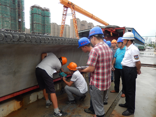 本次检查主要为工程质量检查,省交通厅质监局检查组委托台州质监站检测公司对项目各个标段的钢筋、水泥、地材等原材料进行抽样检查,同时对已完成的实体工程进行钢筋保护层厚度、强度、垂直度等数据的实体检测。周建强副处长还先后检查了本工程各标段的钢筋加工场、工地试验室、拌合站、梁板预制场等,对本项目的标准化建设和管理给予赞扬,对项目各标段的试验建设及试验检测工作表示肯定。