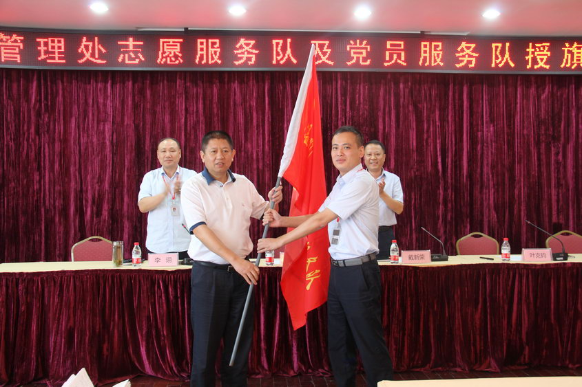 仪式首先由叶副主任宣读《关于成立温州大桥管理处志愿服务队的通知》和《关于成立温州大桥管理处党员服务队的通知》,并由徐书记为党员服务队及志愿服务队代表授旗。随后,戴主任对处志愿服务队及党员服务队成立的背景、目的以及筹备过程做了介绍,并希望全体志愿者以此次授旗仪式为契机,认真贯彻落实集团党建特色品牌工作部署,充分发挥党员干部和团员青年先锋模范作用,带领全体志愿者深入开展各项志愿服务工作,为打造温州大桥志愿服务品牌作出应有贡献。