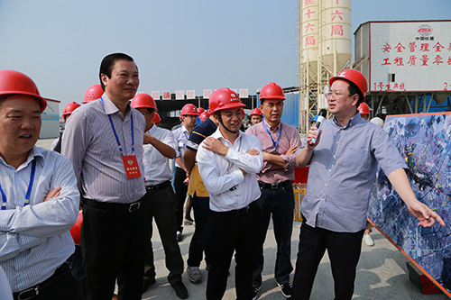 余梅生主席一行先后视察了项目第4标段拌合站、展板布置区、钢筋加工场、梁板预制场,近距离感受项目的建设氛围。