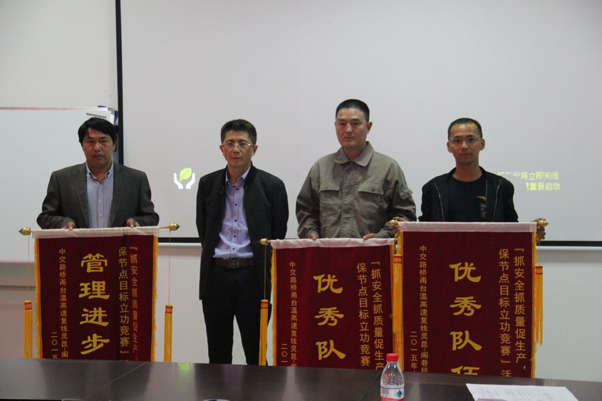 为继续保持工程建设的良好势头,进一步激励员工积极性,项目部特组织召开了竞赛活动第一阶段表彰大会,为先进队伍及个人颁发了锦旗、证书及奖金,并希望全体员工再接再厉,按时保质保量完成攻坚工作任务。