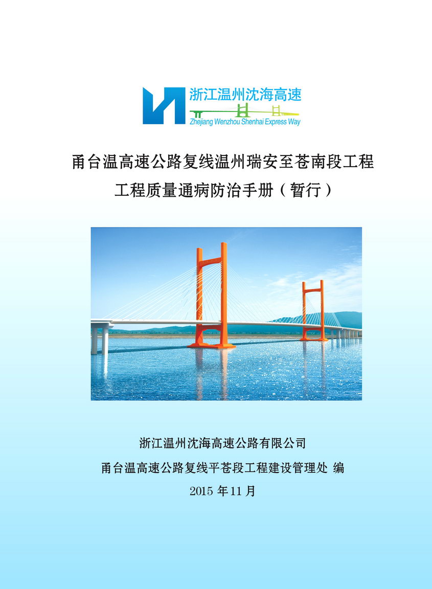 该手册针对高速公路施工质量存在的普遍通病,全面阐述分析了高速公路施工质量控制手段以及在各阶段、各环节做好质量控制的措施。该手册共分七章,包含编制目的和依据、路基工程质量通病防治、路面工程质量通病防治、桥梁工程质量通病防治、隧道工程质量通病防治等要点,涵盖了整个工程项目的内容,共计10万5千余字。