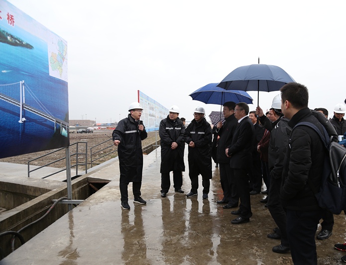 在项目现场,张耕代市长一行听取了集团就瓯江北口大桥项目的基本概况和进展情况的简要汇报。瓯江北口大桥是国内外首座三塔四跨双层钢桁梁悬索桥,也是我省继舟山连岛大桥、杭州湾跨海大桥、嘉绍大桥之后即将开建的又一座国家级的重大桥梁工程。去年12月,该项目工可报告成功获得国家发改委批复,取得国家近15亿元的补助,成为温州有史以来获得国家补助资金最多的高速公路项目;同月,初步设计通过省交通厅预审查,随后在一个月内上报国家交通部;今年1月4日,大桥正式开工。2016年,项目业主单位将争取初步设计于4月底前通过国家交通部审批;主桥施工图于10月底前通过省交通厅审批;并在年内实现主体工程开建。