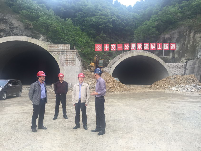 刘峰主任一行实地察看了第4标段屏山隧道工地现场和第5标段预制梁场,详细询问了工程概况和进展情况,并对工程的标准化施工、钢筋工厂化制作安装和预制梁养生用水循环利用等工作给予充分肯定。他强调,作为我市目前各项条件最为成熟的高速公路项目,市委、市政府及社会各界高度关注工程的推进情况,绕西南项目要抓紧当下的有利机遇,抢抓时间、集中力量,在保证安全和质量的前提下,进一步加快工程进度,确保项目早日建成通车,为国有资产的增值和社会经济发展做出贡献。