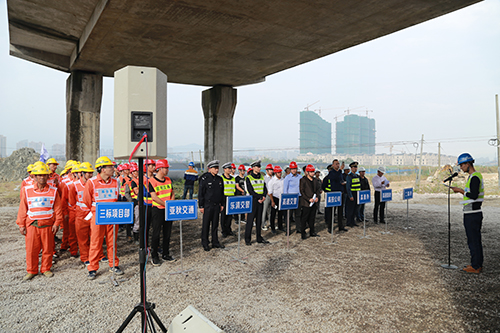 3标项目经理刘胤对本次拆桥施工任务作了简要介绍,随后,亚秋交通、监理单位代表分别作了表态发言。
