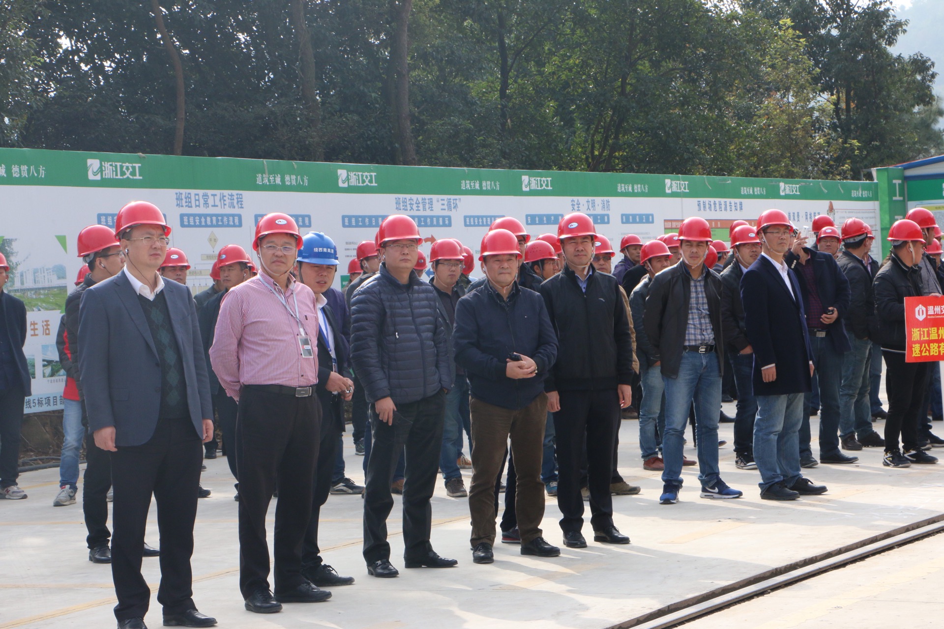 根据年度工作安排,12月1-2日,集团组织各项目参建单位的代表到参评单位施工现场观摩学习。市交通运输局副局长蒋理江、建设处处长黄国岳、市总工会经济部部长梁文、市交通工程质监局局长周建华以及集团领导班子、市铁投集团相关专家受邀参加,并对各参评单位进行评比打分。
