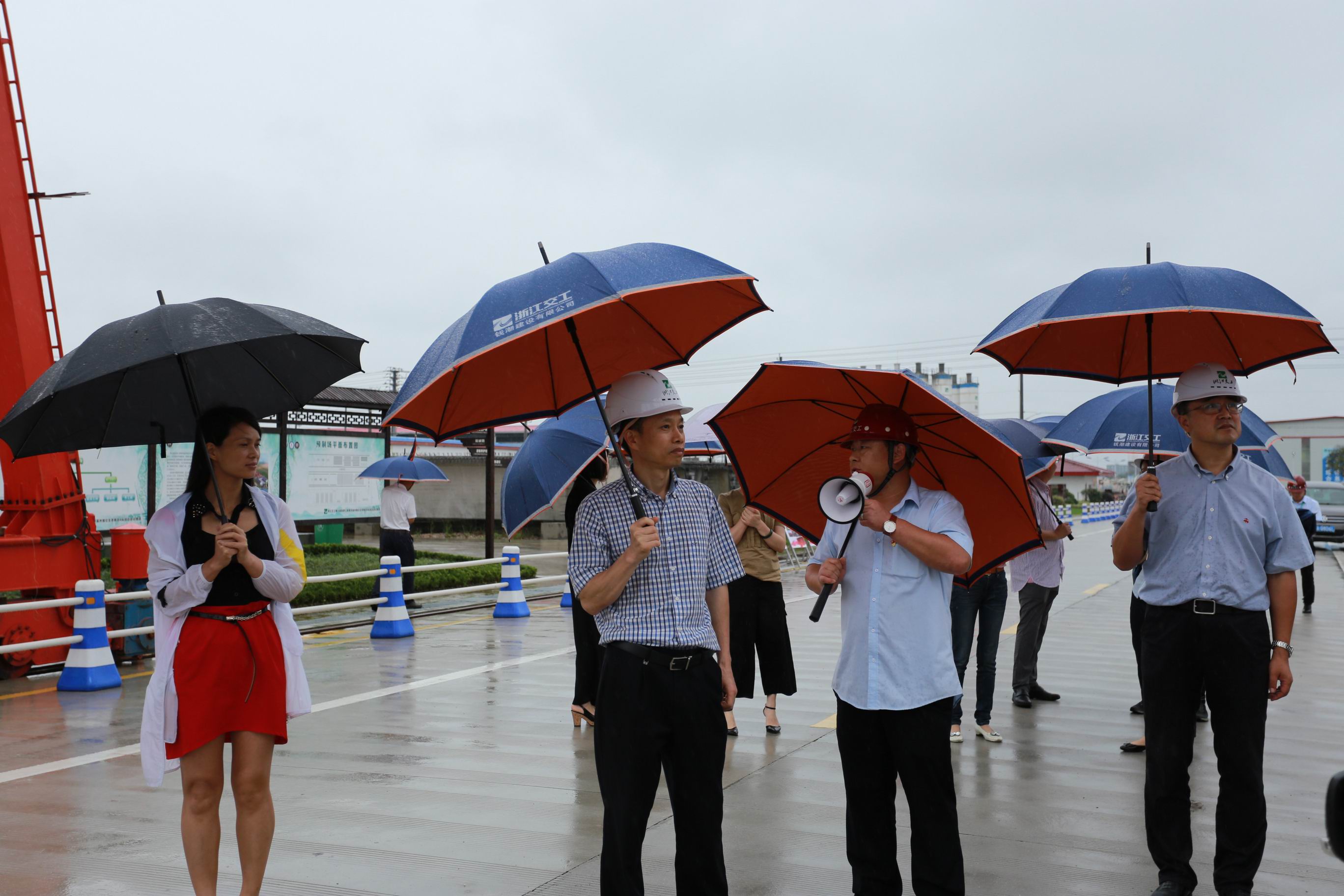 程龙凤一行轻车从简,冒雨研了甬台温复线平苍段3标鳌江特大桥施工现场和4标“生态预制场”的立功竞赛活动开展情况,一路听取了沈海公司以及两个项目部关于竞赛活动实施及现场会准备工作情况的汇报。