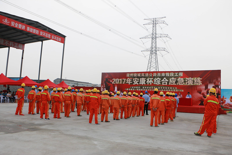 为丰富安全生产月及“安康杯”活动,进一步提高应急处置速度,完善应急管理机制,培养自救互救的能力。6月28日下午,绕西南公司在第14标段水稳工区组织开展了“安康杯”综合应急演练,集团副总经理、绕西南公司董事长管连众,集团安全管理部经理宋海良,市总工会经济工作部副部长陈亮,绕西南公司党支部副书记曾国炜、总工程师黄应明,全线各监理、施工单位有关人员等120余人参加。