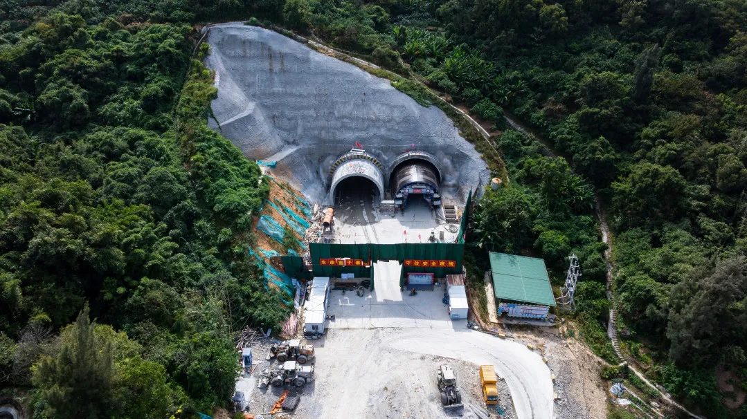 面对复杂地质与技术要求,项目团队提前策划,科学部署,编制专项施工方案,强化技术交底与安全培训。施工期间,严格控制爆破振速,加强全过程监控与数据监测,采用“明挖法+新奥法”组合施工工艺,在明洞段高效推进边坡支护作业,暗洞段则严格遵循新奥法“短进尺、弱爆破、强支护”原则,并借助超前地质预报技术精准探明围岩状况,动态优化支护参数,保障围岩与支护结构协同受力,最终实现了隧道的安全精准贯通。